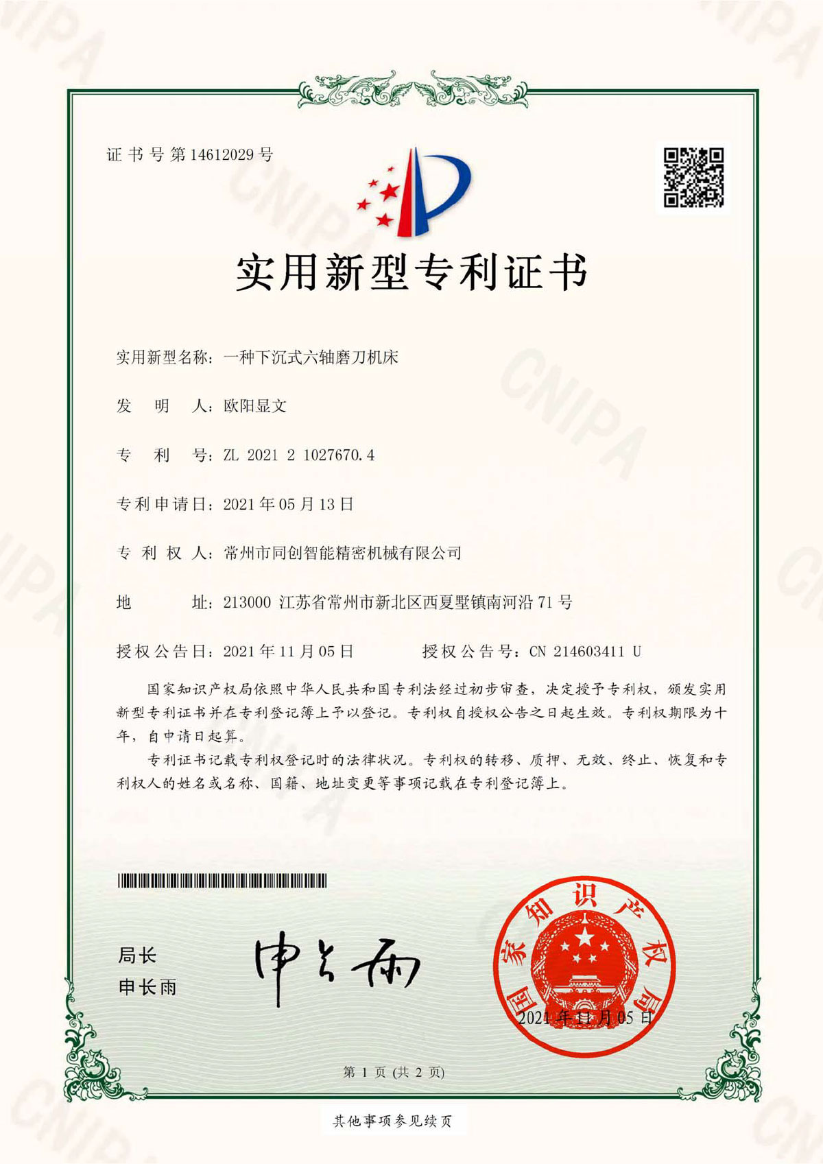 专利证书